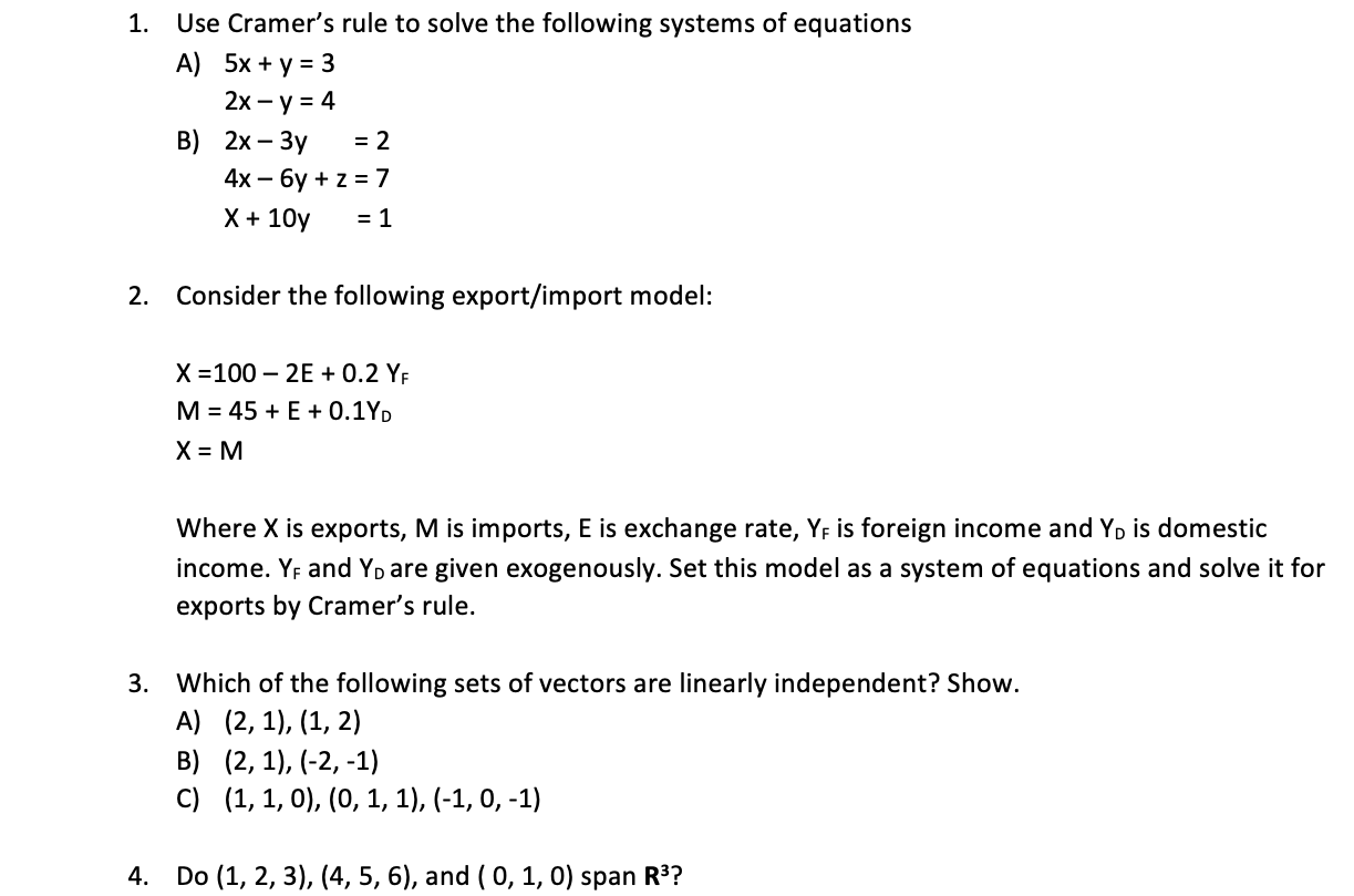 2x 3y=2 x-y/2=1/2 using cramer's rule-WebFind the weights assigned to the three varieties by using Cramer's Rule 6 A total of ₹8,500 was invested in three interest earning accounts The interest rates were 2%, 3% and 6% ifWebYou divide each variable determinant by the determinant of the coefficients EXAMPLE Use Cramer's Rule to solve the following system of equations 2xyz=3